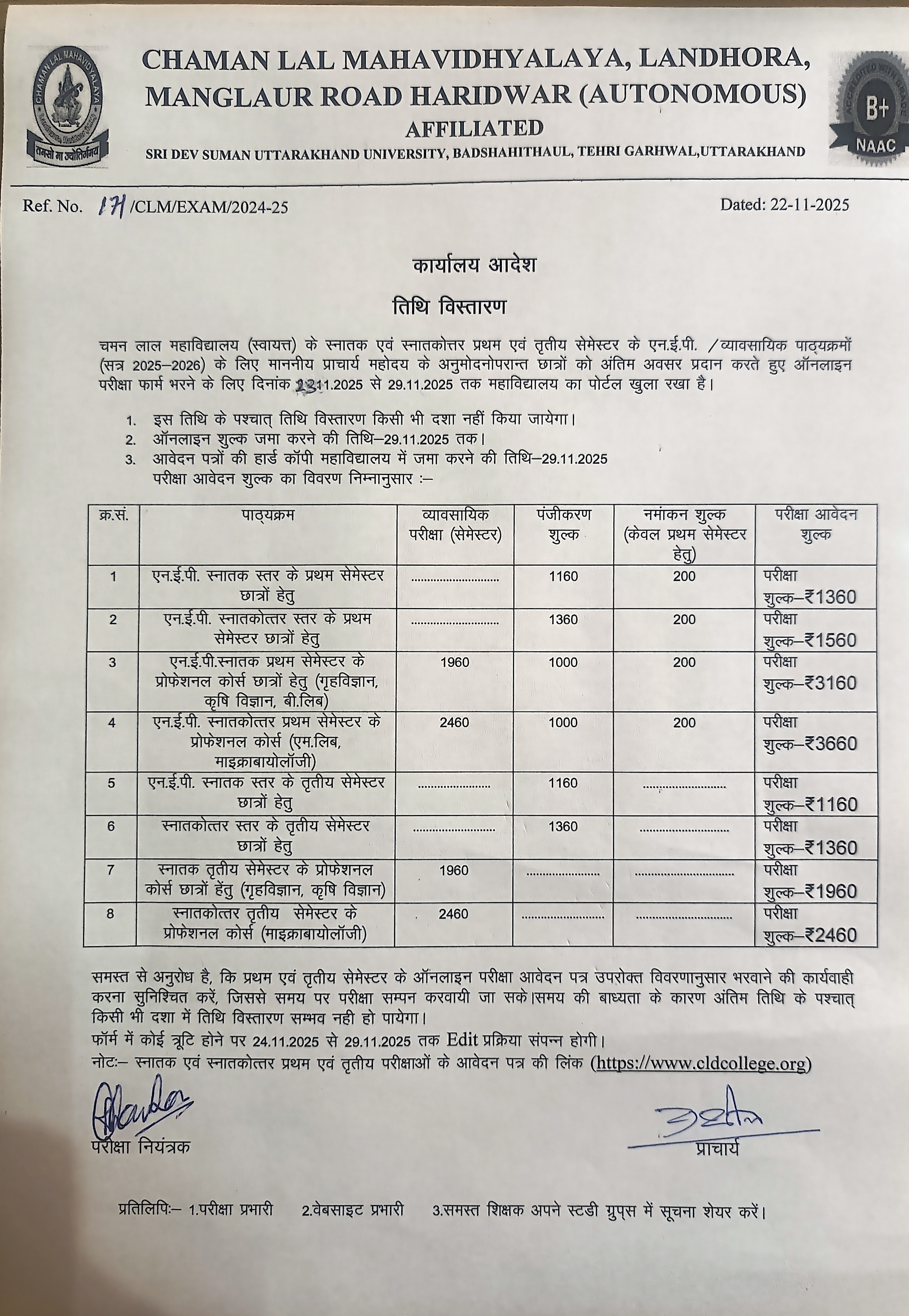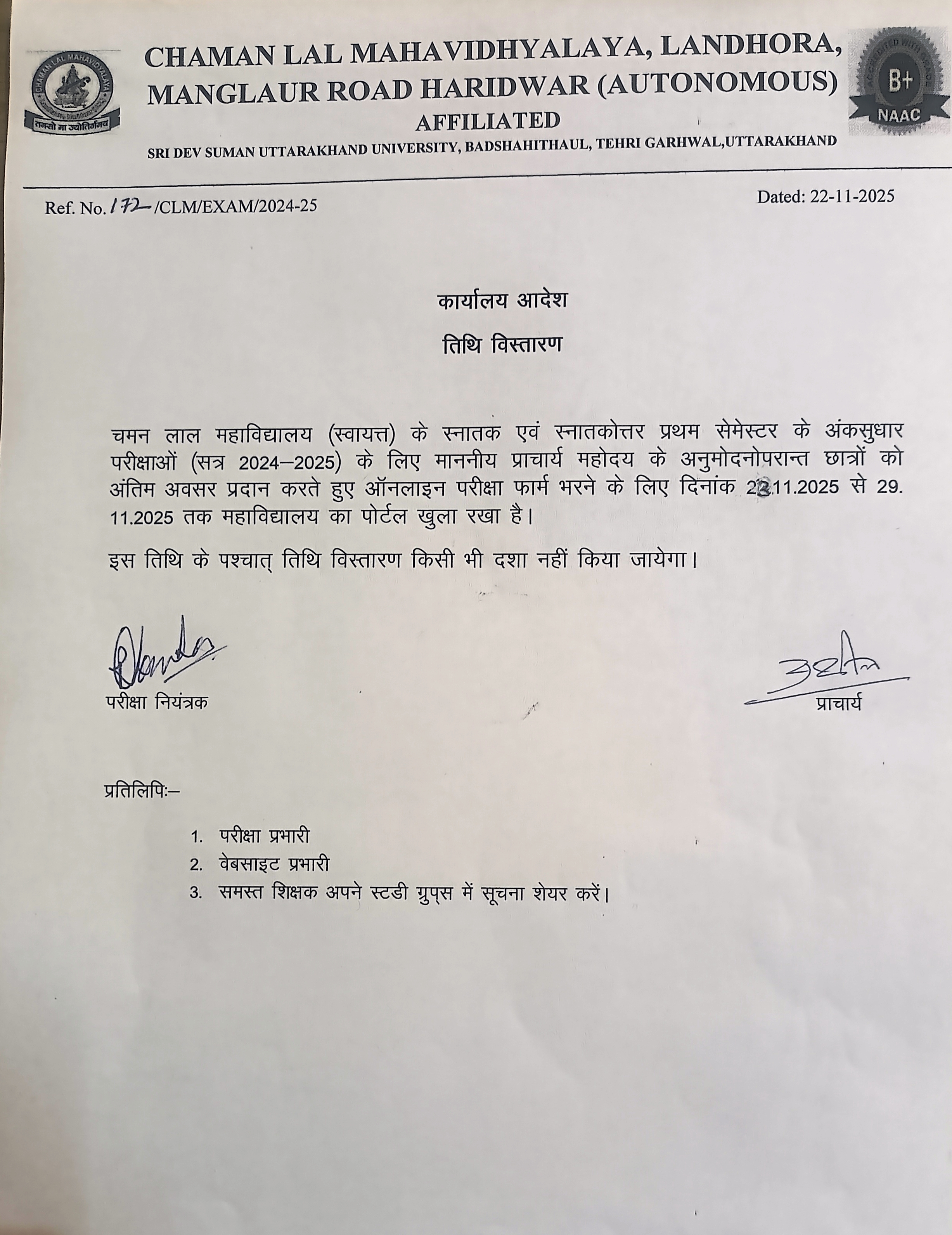 Exam Form Date Extended