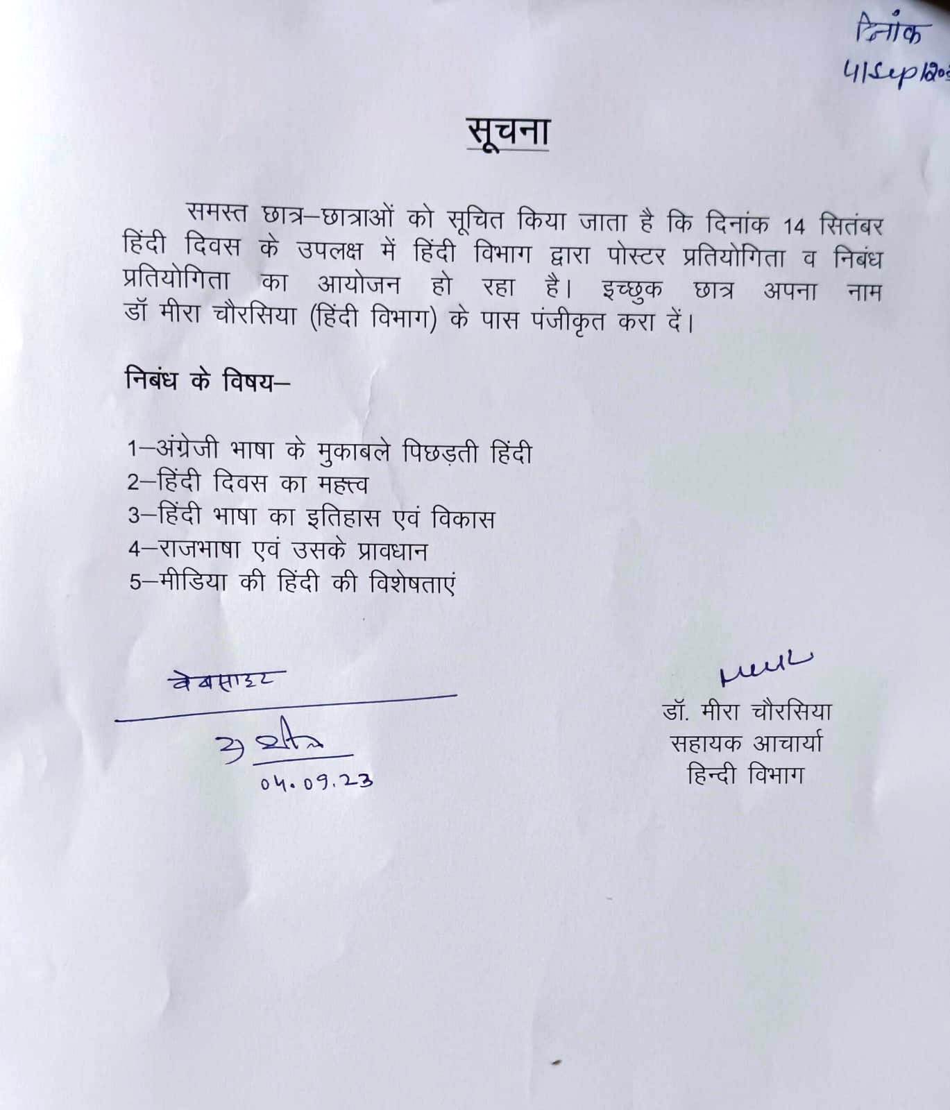 NOTICE REGARDING HINDI DIVAS 14 SEPTEMBER 2023